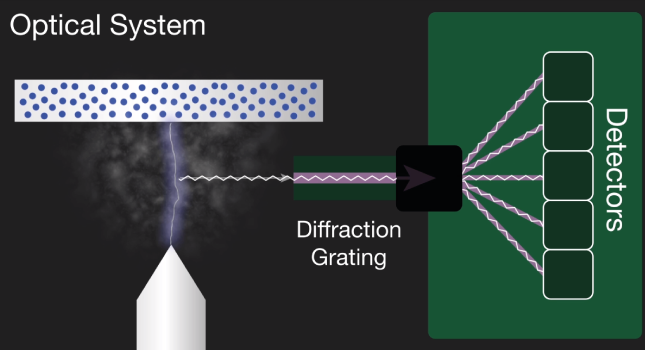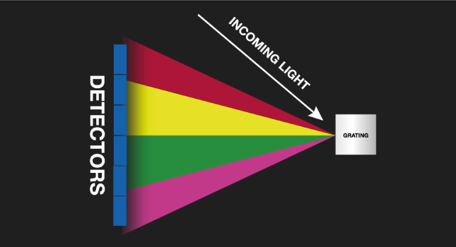 2. An optical device that captures light, separates it into its spectral lines and measures it. This uses high-resolution grating to separate the incoming light into element-specific wavelengths. A corresponding detector then measures the intensity of light for each wavelength, which are unique to each element. The intensity measured is proportional to the concentration offset element in the sample.